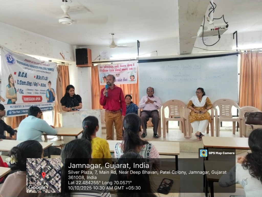 A seminar on Mental Health Awareness under the initiative TELE-MANAS (Tele Mental Health Assistance and Networking Across States) was conducted to promote understanding and support for mental well-being. The session aimed to educate students and staff about the importance of mental health, reducing stigma, and encouraging open discussions about emotional challenges. Experts from the mental health field explained how the TELE-MANAS helpline provides free, 24x7 tele-counselling and professional mental health services across India.
